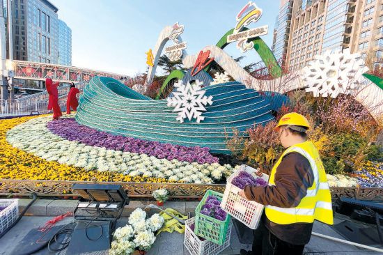 為冬殘奧會進行景觀布置 14萬株“超級鮮花”擺上街頭