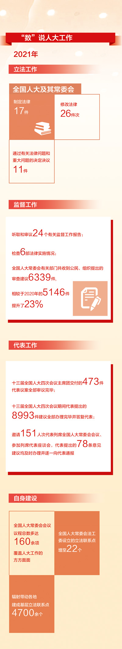 過(guò)去一年,一組組亮眼數(shù)據(jù)折射出我國(guó)立法工作取得的沉甸甸成績(jī),體現(xiàn)立法工作堅(jiān)持黨的領(lǐng)導(dǎo)、體現(xiàn)人民意志、回應(yīng)社會(huì)關(guān)切,堅(jiān)持科學(xué)立法、民主立法、依法立法,充分發(fā)揮法治固根本穩(wěn)預(yù)期利長(zhǎng)遠(yuǎn)的保障作用。