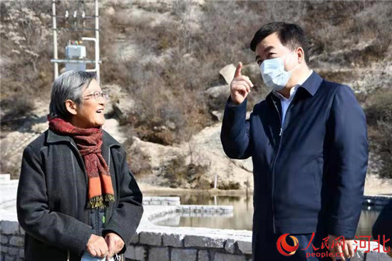 黨曉龍與鄧小嵐在保定阜平鐵貫山腳下暢談基礎(chǔ)教育。 人民網(wǎng) 張繼航攝