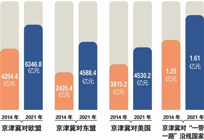 水深則魚悅,城強則賈興。從2014年至今,京津冀地區(qū)進出口規(guī)模連創(chuàng)新高,2019年首次超過4萬億元,2021年更是達到4.44萬億元。在此基礎上,搶抓RCEP帶來的政策紅利,京津冀外貿(mào)出口規(guī)模有望再上新臺階。(記者 張兆瑞)