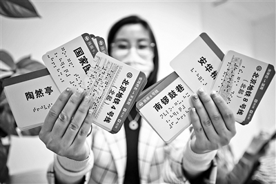 一位盲人朋友摸讀著盲文線路卡禁不住激動(dòng)地讀出了聲。他說(shuō):“這個(gè)線路卡真的很棒,它讓我詳細(xì)了解到地鐵沿線到達(dá)各站。特別是卡片上的通用盲文點(diǎn)字飽滿而圓潤(rùn),摸上去手感特別好。我特別喜歡這個(gè)環(huán)裝的設(shè)計(jì),覺得特別有新意,這跟我們以前傳統(tǒng)的盲文讀物相比特別洋氣?!?/p>