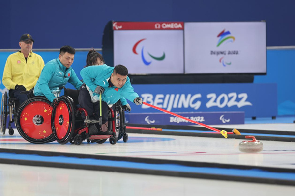 人民網(wǎng)哈爾濱3月12日電 (楊雪楠)3月12日,在北京國家游泳中心“冰立方”舉行的北京冬殘奧會輪椅冰壺決賽中,中國隊(duì)?wèi)?zhàn)勝瑞典隊(duì)獲得金牌,這是中國輪椅冰壺隊(duì)在平昌2018年冬殘奧會奪金后的成功衛(wèi)冕。在決賽中,中國輪椅冰壺隊(duì)隊(duì)長、黑龍江運(yùn)動員王海濤在關(guān)鍵時刻投出漂亮的“雙飛”,有力助力了中國隊(duì)最終奪金。