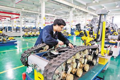 中信重工開(kāi)誠(chéng)智能裝備有限公司組裝人員正在組裝消防機(jī)器人底盤。 中信重工開(kāi)誠(chéng)智能裝備有限公司供圖