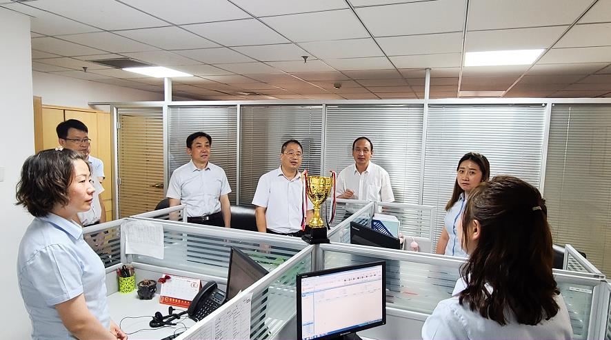 人民銀行消保局副局長(zhǎng)馬紹剛在太原中心支行視察12363熱線(xiàn)工作。