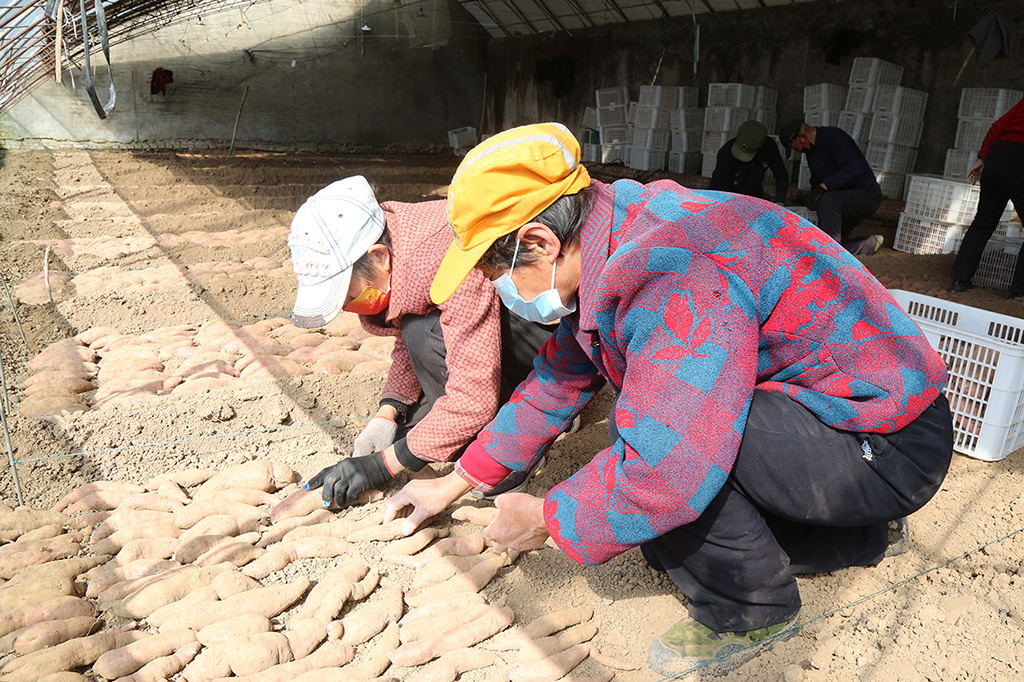 入春以來,梨之韻專業(yè)合作社將在11棟溫室大棚進(jìn)行“神農(nóng)1號”的育苗工作。每棟溫室大棚占地一畝,畝均排種2萬斤種薯、培育薯苗80萬株,5月份可全部出欄。“我們將通過‘神農(nóng)1號’紅薯育苗打造紅薯種苗示范基地,并把溫室大棚育苗經(jīng)驗推廣到周邊村鎮(zhèn),帶動更多村民在家門口就業(yè)增收。下一步,我們還將充分運(yùn)用智慧農(nóng)業(yè)系統(tǒng),實(shí)現(xiàn)育苗的自動化灑水、補(bǔ)光、控溫等,有效推動富硒紅薯育苗智慧化發(fā)展。”王飛表示。