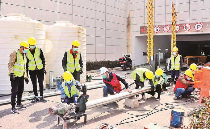 南京一疫情隔離點(diǎn)開展污水處理系統(tǒng)安裝工作。 通訊員 李天心 本報(bào)記者 范俊彥 攝