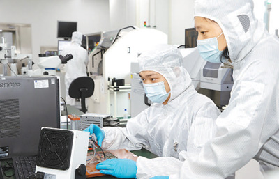 研究人員對柔性電子封裝線電性功能進(jìn)行測試。浙江清華長三角研究院供圖
