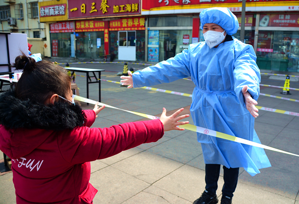 3月4日晚,連云港市海州區(qū)發(fā)現(xiàn)1例陽性人員,港城疫情防控阻擊戰(zhàn)就此打響。5日早上6點半,孫麗群接到參與核酸檢測服務工作的通知,第一時間將讀小學的女兒送到姐姐家照顧,轉(zhuǎn)頭便投入到疫情防控工作中去。相隔十幾天不見,女兒在做核酸檢測時見到了媽媽,思念的淚水瞬間“決堤”。