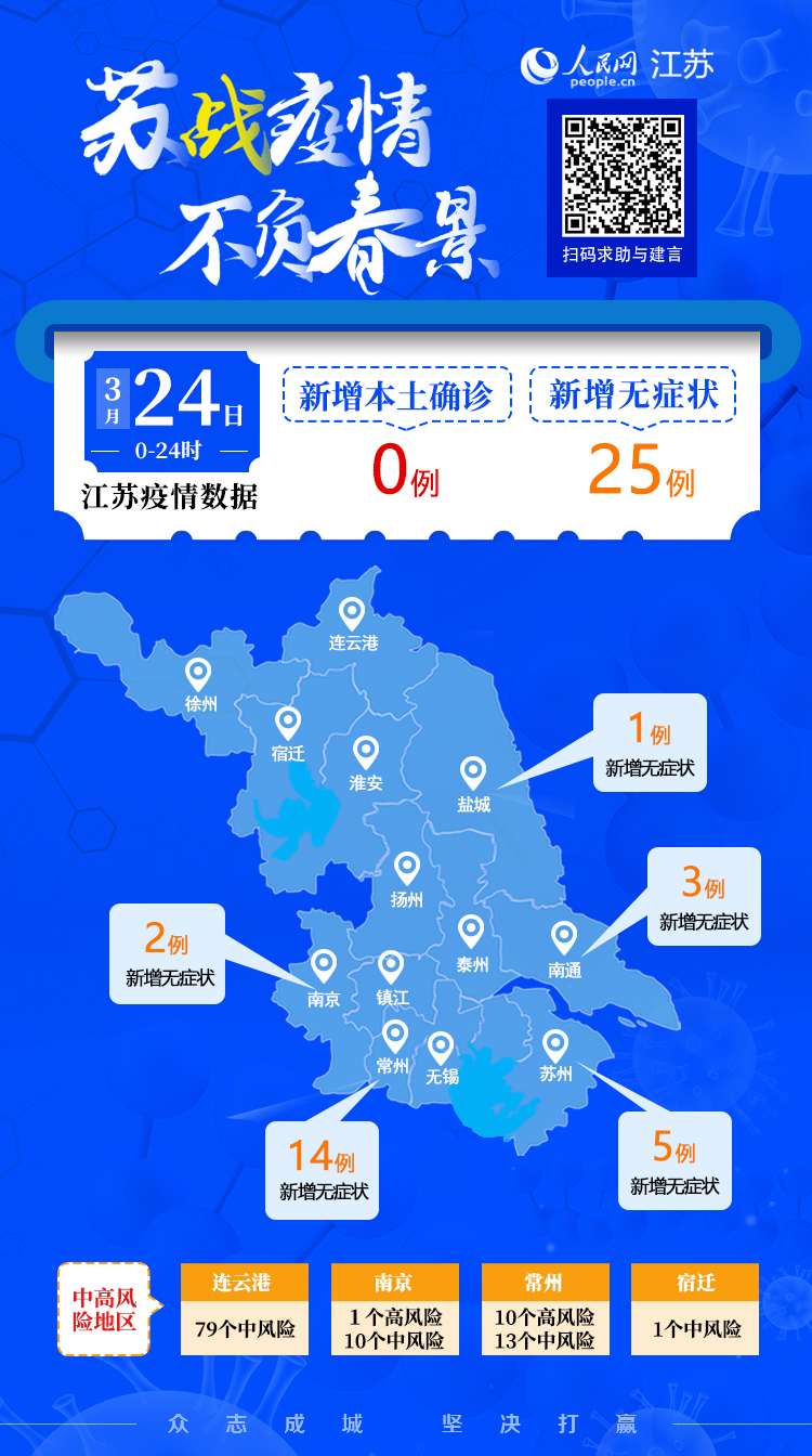 3月24日江蘇新增本土無癥狀感染者25例 涉及五市