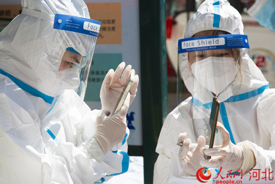 張振是滄州市人民醫(yī)院胃腸外科的護(hù)士。去年,他曾到藁城支援核酸采集工作。這一次,接到緊急任務(wù)通知后,有核酸采集經(jīng)驗(yàn)的他再次與同事奔赴核酸采集點(diǎn)?!扒皫滋煳覀?cè)诤游鞅苯稚鐓^(qū)采集核酸,每人每天大概要采600余人的樣本?!彪娫?huà)里,張振的聲音略微沙啞。