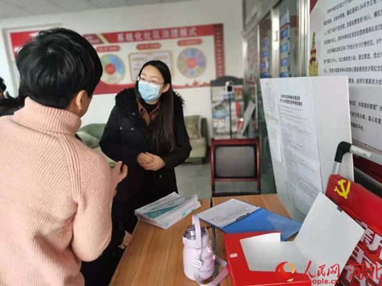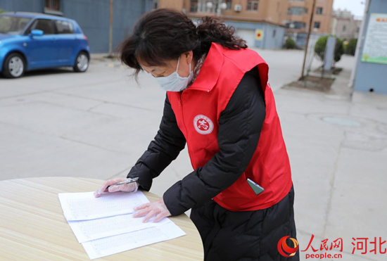 河間市的志愿者身穿紅馬甲在防控一線(xiàn)提供志愿服務(wù)。 李世文攝