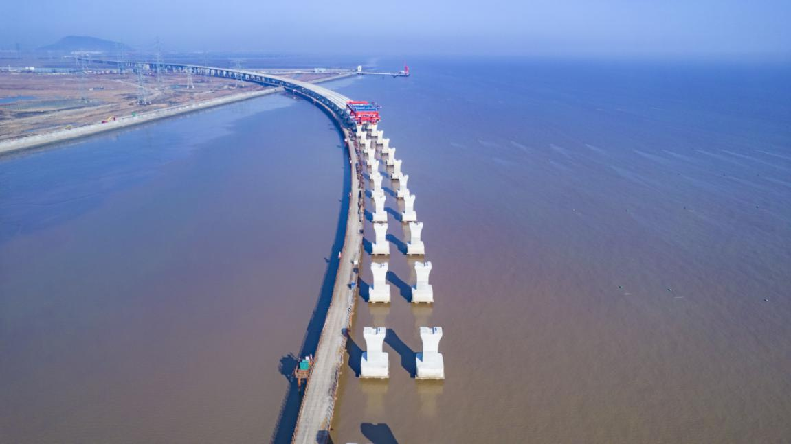 杭甬復(fù)線寧波一期項目濱海高架特大橋施工現(xiàn)場。浙交建設(shè)公司供圖