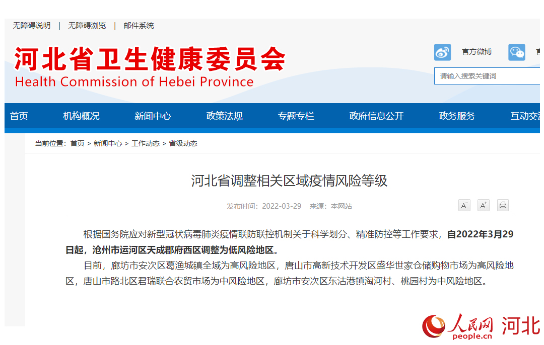 河北省調(diào)整相關(guān)區(qū)域疫情風(fēng)險(xiǎn)等級