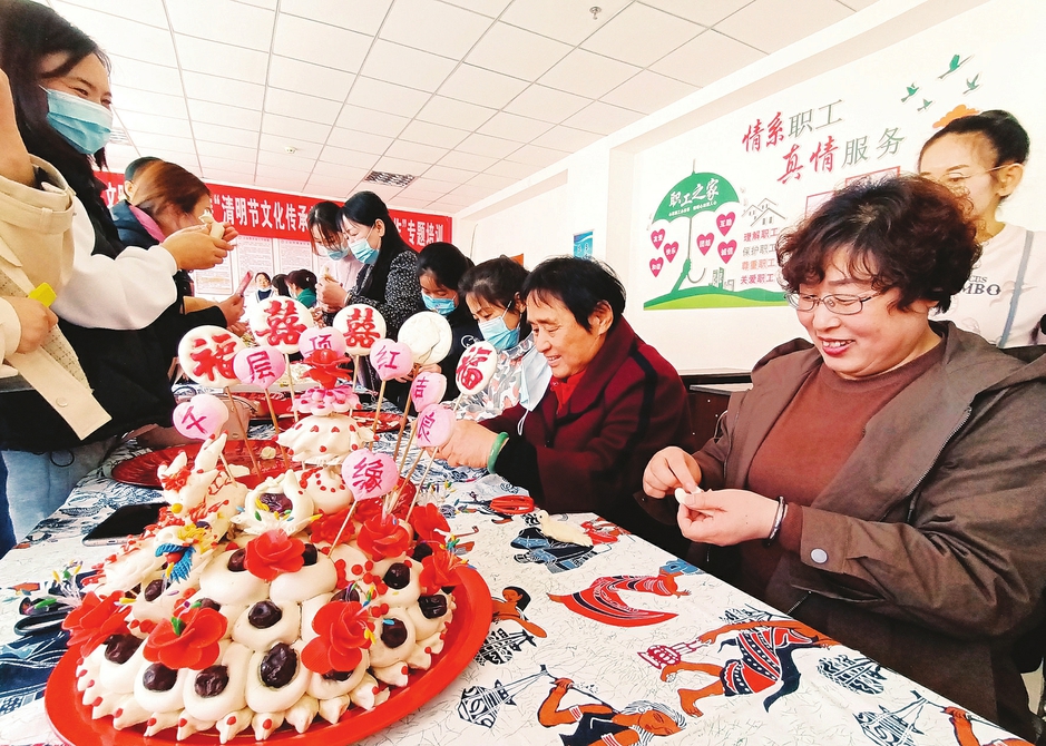 三月二十七日,石樓縣新時代文明實踐中心開展“清明節(jié)文化傳承教育和傳統(tǒng)美食制作”專題培訓(xùn),邀請“面花”手藝人現(xiàn)場教授捏面燕,倡導(dǎo)移風易俗、文明祭祀。(李晶晶攝)