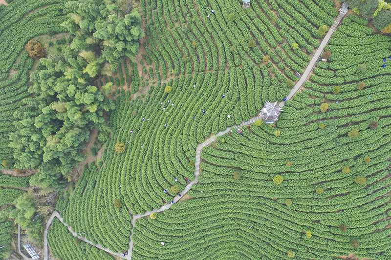 放眼望去,宣城市旌德縣白地鎮(zhèn)一彎彎一排排的茶樹(shù)錯(cuò)落有致。江建興攝