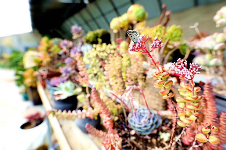“目前我們基地投資建設(shè)的6個(gè)農(nóng)業(yè)溫室大棚,占地面積6700平方米,可售多肉品種達(dá)170余種,春秋兩季是多肉植物生長最旺盛的季節(jié),溫差大,且顏色鮮艷。目前,我們的主要工作就是對(duì)多肉植物進(jìn)行繁殖,根據(jù)植物種類的不同,繁殖的方法主要有播種繁殖、扦插繁殖、分株繁殖以及嫁接繁殖?!倍嗳饣刎?fù)責(zé)人路秀華介紹說。