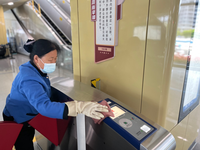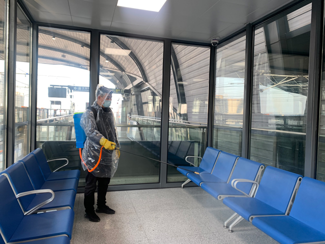 在站臺(tái)、站廳等重點(diǎn)區(qū)域,盡管沒有了客流,海寧運(yùn)營(yíng)公司根據(jù)車站實(shí)際需求維持了每日3至4次的消殺頻次。