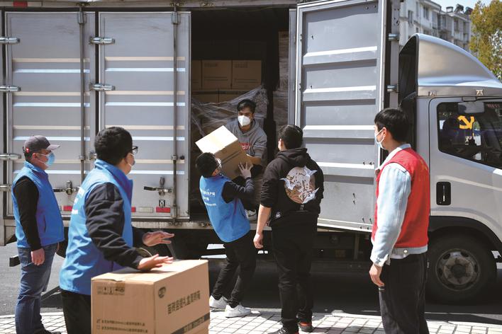 4月6日,在嘉興南湖區(qū)東柵街道雙溪社區(qū),愛心企業(yè)在嘉興團市委的統(tǒng)籌下,將一批牛奶等愛心物資送到抗疫一線。當天,該愛心企業(yè)將1200箱牛奶分別送至嘉興南湖區(qū)、秀洲區(qū)、經(jīng)開區(qū)、桐鄉(xiāng)市和海寧市的“疫”線志愿者手中,為他們送去溫暖。(王振宇)