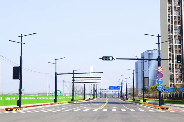 蘇州高鐵新城城市建設管理服務中心市政綜合管理科工作人員郭峰介紹,這批路燈通過集成道路名牌、機動車信號燈、治安監(jiān)控、交通違法電子抓拍等設備設施,原本6至7根桿件,現(xiàn)在只需要1至2根就足夠了。多桿合一后,單個路口可以節(jié)約資金約25萬元,也留出了更多市政空間資源,讓居民出行環(huán)境更簡約、安全、便利。