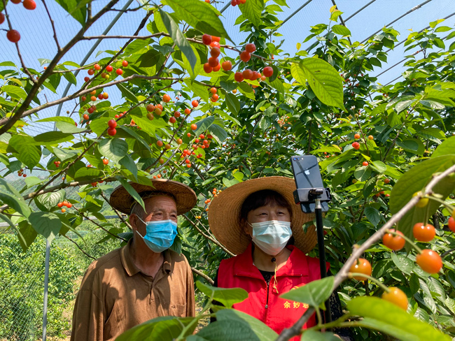 近日,在金華市金東區(qū)赤松鎮(zhèn)虎巖村,“短柄”櫻桃成熟,猶如一盞盞小燈籠掛在枝條,村黨員志愿者網(wǎng)上幫助農(nóng)戶吆喝?;r村黨支部書記王基林介紹說,全村櫻桃種植面積1300多畝,品種有傳統(tǒng)的短柄、黑珍珠以及新引進(jìn)的紅妃,櫻桃銷售收入成為村民的一項主要經(jīng)濟(jì)來源,這幾天天氣晴好,櫻桃成熟快,一星期后上市量更大,采摘期持續(xù)到5月初。2022年為了防控新冠疫情,村黨支部組織黨員和志愿者把農(nóng)戶采摘的櫻桃派送到指定地點,方便預(yù)訂的客戶拿取。(時寬兵)