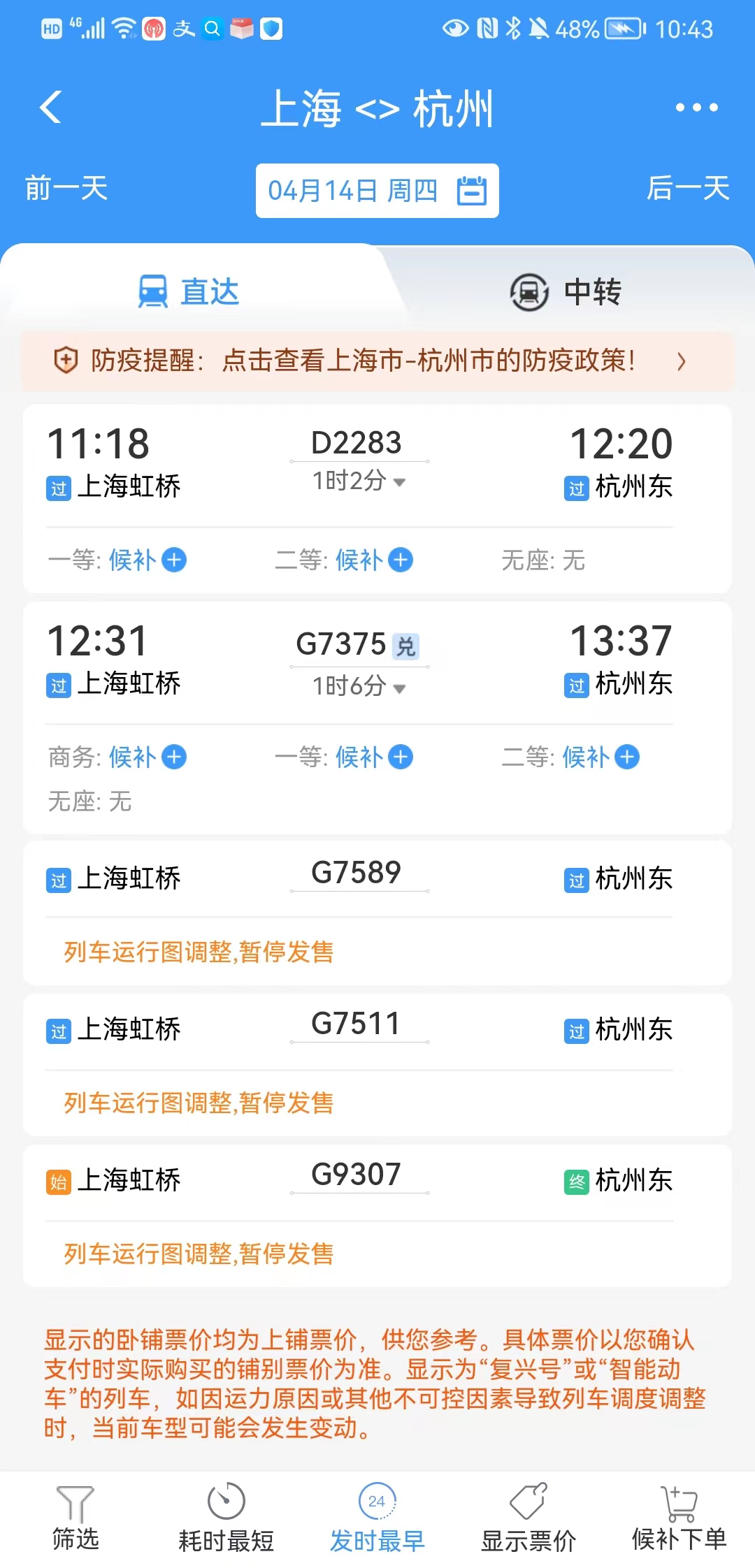 以查詢(xún)4月14日上海-杭州的火車(chē)票為例,僅剩的5趟列車(chē)中,D2283、G7375只是從上海虹橋站經(jīng)過(guò),車(chē)票售罄是因?yàn)橘I(mǎi)票的幾乎都是別的城市上車(chē)的旅客,實(shí)際從虹橋站上車(chē)的旅客幾乎沒(méi)有;另外兩趟在上海虹橋站的過(guò)路車(chē)(G7589、G7511)和一趟始發(fā)車(chē)(G9307)干脆已暫停發(fā)售車(chē)票,更不存在大量上海出發(fā)旅客買(mǎi)票的可能。