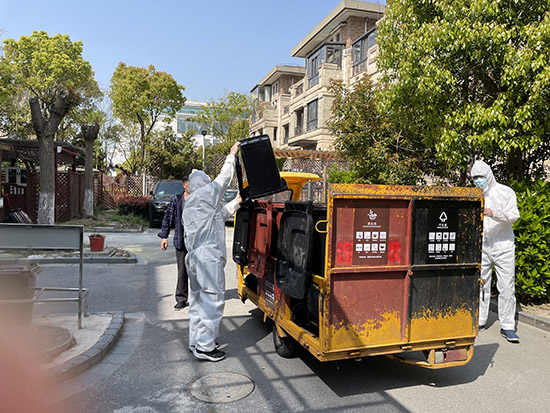 除了保安,保潔人員也缺位了。4月7日,姚書記找居委會(huì)要來(lái)十幾個(gè)垃圾桶,組織志愿者收集垃圾。因?yàn)?天沒(méi)收過(guò)垃圾,垃圾又多又臭。高杰、趙連均、俞衛(wèi)忠等志愿者沖在前面,他們一改平日“西裝革履”的打扮,化身“保潔員”,當(dāng)被問(wèn)及“4天不收的垃圾臭不臭”時(shí),他們笑笑說(shuō),“又臟又臭是真的,不過(guò)大家都換位思考,我們就收幾次而已,環(huán)衛(wèi)工人每天干才辛苦?!敝螅^(qū)每天就有鄰居輪流收垃圾,做到日產(chǎn)日清。一位鄰居在群里反映巡邏時(shí)發(fā)現(xiàn)路上落葉較多時(shí),大家又一呼百應(yīng),拿出自家的掃帚,一起把小區(qū)道路打掃干凈。