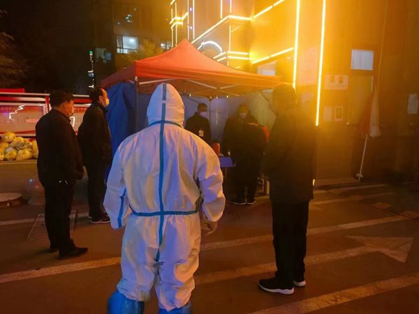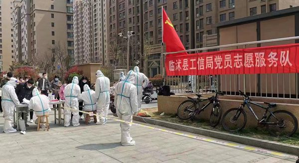 3月31日臨沭縣發(fā)現(xiàn)無癥狀感染者病例后,縣工信局聞令而動(dòng),迅速組織人員集結(jié)奔赴幫包網(wǎng)格小區(qū),當(dāng)日協(xié)助開展全員核酸檢測(cè)3550余人次,隨后又完成封控區(qū)上門核酸檢測(cè)、執(zhí)勤區(qū)域搭建、特殊群體人員排查、夜間值守等工作。 同時(shí)招募社區(qū)志愿者協(xié)助封控區(qū)居民每日運(yùn)送生活物資、生活垃圾1000余份。在與疫情戰(zhàn)斗的十多天中,圓滿完成幫包小區(qū)管控區(qū)全員核酸檢測(cè)2.45萬人次,封控區(qū)全員核酸檢測(cè)3541人次,出入口24小時(shí)值守等各項(xiàng)工作任務(wù),筑牢疫情防控“銅墻鐵壁”。