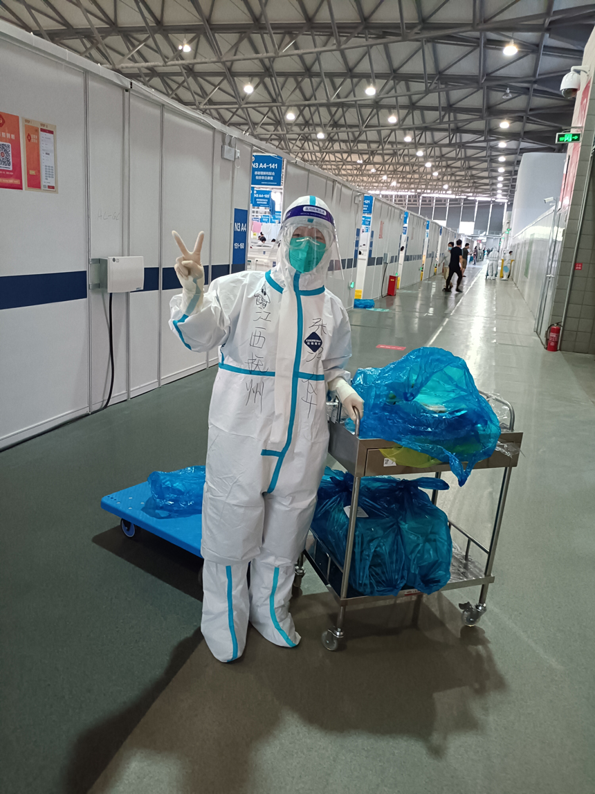 4月7日,張沖華隨隊正式進(jìn)駐上海新國際博覽中心方艙醫(yī)院N3艙,主要負(fù)責(zé)物資補(bǔ)發(fā)和護(hù)理,每天進(jìn)艙時間是4小時,加上交接班時間,每天需要忙碌近八小時。