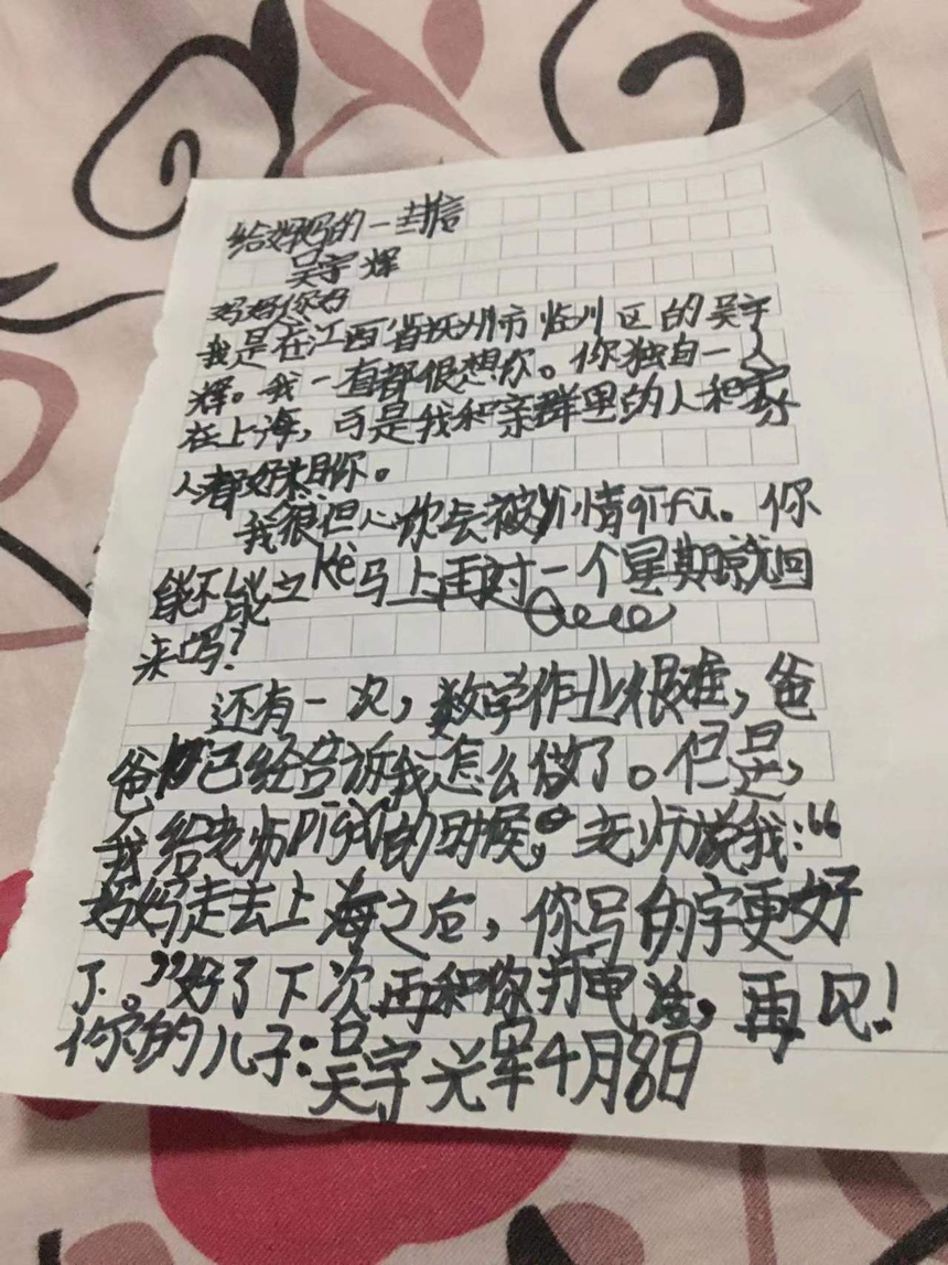“我是后來才知道,兒子的這封信是瞞著家人寫的,并用奶奶的手機(jī)拍下來發(fā)給我。”張沖華告訴本網(wǎng),這是兒子給自己的第一封信,真的太感動了,一定要認(rèn)認(rèn)真真的給他回一封信,話語中帶著哽咽。