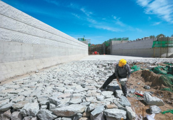 這些不規(guī)則的干砌石可以防止通水后河水掏刷建筑物,造成建筑物地基不穩(wěn)。本報(bào)記者 白繼開(kāi)攝