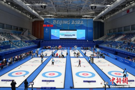 4月16日,北京,民眾在國家游泳中心體驗(yàn)冰壺運(yùn)動。當(dāng)日,國家游泳中心重新面向公眾開放,并開啟冬奧文化大眾體驗(yàn)季,民眾可在冬奧會原有設(shè)施、燈光、大屏、景觀等環(huán)境下,感受冬奧和冰壺文化的氛圍。中新社記者 崔楠 攝