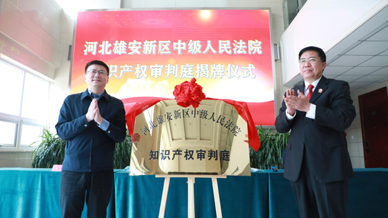 同日上午,河北雄安新區(qū)中級人民法院知識產(chǎn)權(quán)審判庭揭牌儀式在雄安中院進行,開啟雄安新區(qū)知識產(chǎn)權(quán)司法保護新征程。