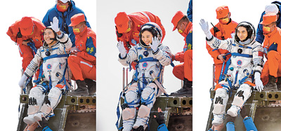 4月16日,神舟十三號載人飛船返回艙在東風(fēng)著陸場成功著陸。這是航天員翟志剛、王亞平、葉光富(左至右)安全順利出艙。