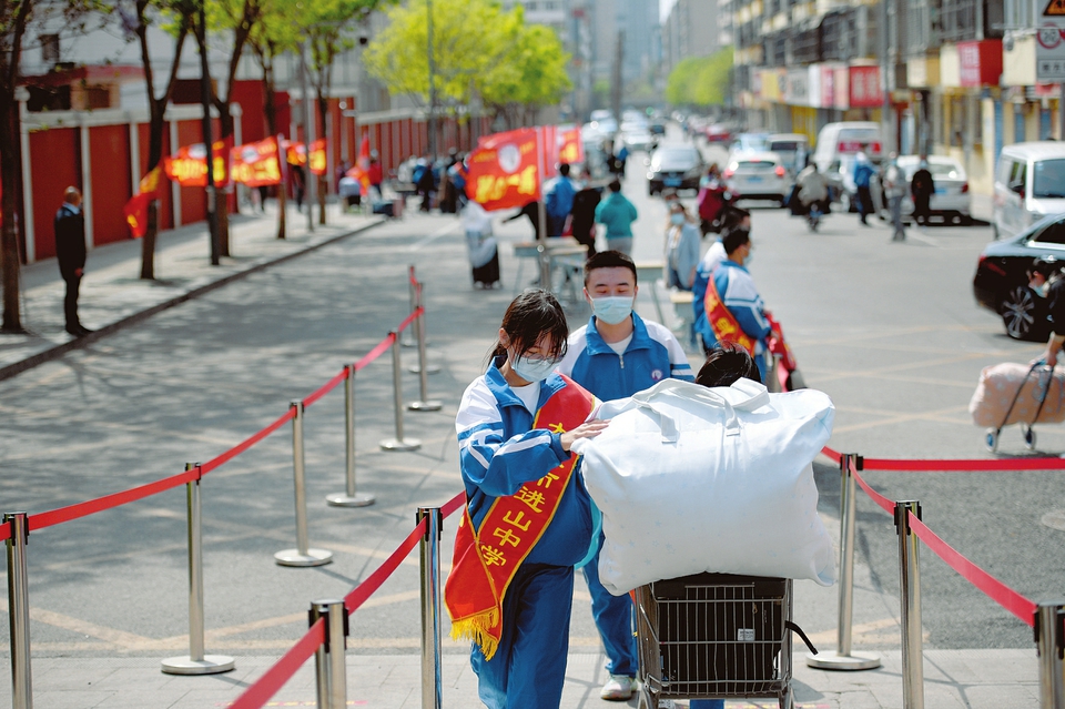4月20日,太原市進(jìn)山中學(xué)高三學(xué)生陸續(xù)返校報到,為回校復(fù)課做準(zhǔn)備。據(jù)了解,省城各中學(xué)高三年級21日封閉式復(fù)課,復(fù)課后,師生員工和服務(wù)管理人員將實行全封閉管理。(記者阮洋攝)