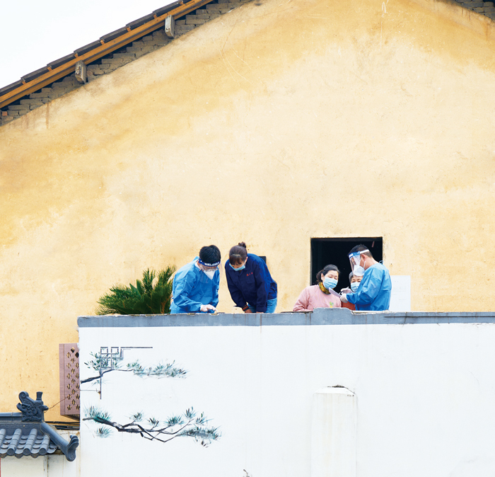 4月19日下午,在金華婺城區(qū)青年路上,兩名志愿者開展上門排查工作。據(jù)了解,從4月19日開始,金華市區(qū)全面開展“清村掃樓”工作,眾多志愿者在抗疫一線奔波,他們與社區(qū)形成合力,高效協(xié)同,以快制快不松勁,努力確保核酸檢測等后續(xù)工作不漏一人、不留風(fēng)險,摸清居民底數(shù),為助力抗疫提供扎實(shí)的數(shù)據(jù)支撐。廣大居民面對上門調(diào)查,積極主動配合,為全民抗疫貢獻(xiàn)自己的一份力量。(黃澤振)