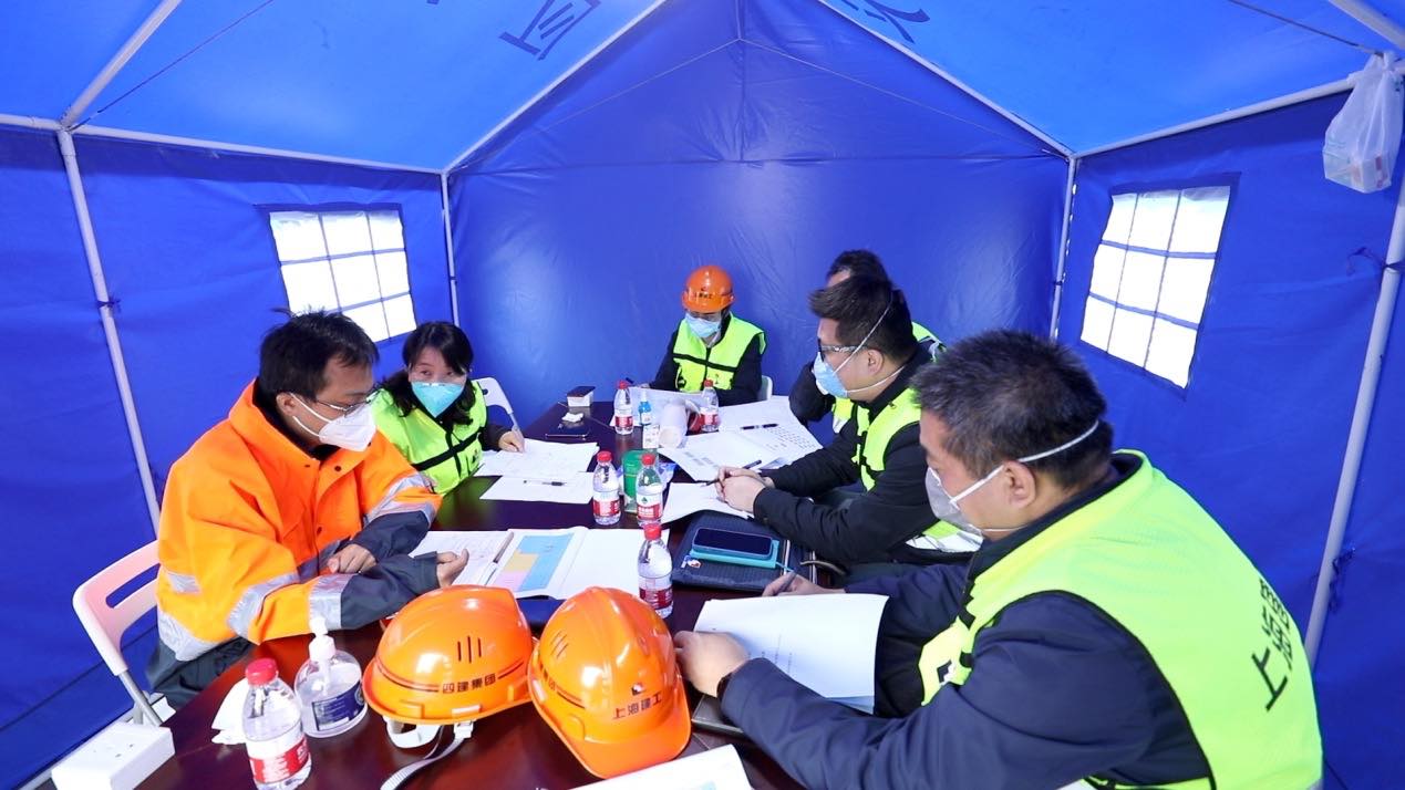 “3月底的上海,還有點冷,沒有被子蓋,我們就裹著衣服,每天只能睡不超過兩小時?!鄙虾=üぜ瘓F副總工程師王美華是施工現(xiàn)場為數(shù)不多的女性?,F(xiàn)場24小時不停工,工人兩班倒,交班后就地鋪板睡覺,但應(yīng)急指揮部管理人員要隨時待命,解決現(xiàn)場各類問題,只能找間隙蜷縮在車?yán)镄菹⒁幌隆?/p>