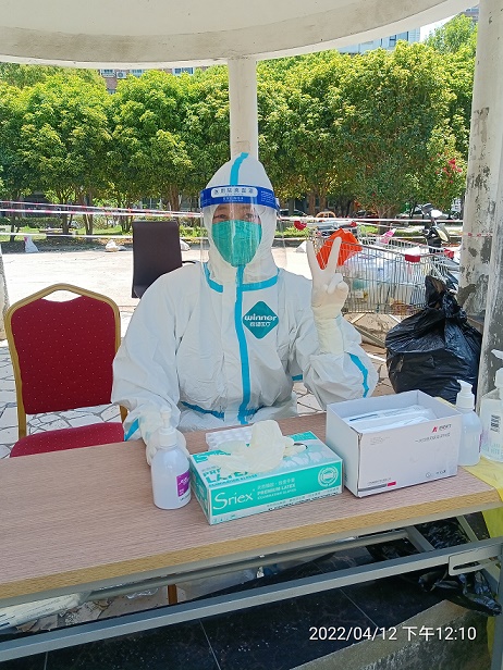 3月以來,上海疫情防控形勢嚴(yán)峻。來自同濟大學(xué)附屬東方醫(yī)院的護(hù)士姜蕾蕾在完成科室內(nèi)本職工作外,還積極報名參與醫(yī)院組織的外出采核工作。從4月3日開始,她便駐扎在浦東陸家嘴街道,負(fù)責(zé)各社區(qū)的核酸大篩查與掃樓任務(wù)。已半個多月沒有回自己的浦東小家陪陪丈夫與孩子的她,更別提回老家江蘇探望家人朋友們了。