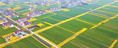 春耕時節(jié),農(nóng)機嗡嗡,春水汩汩,白鷺翩飛。由南向北,一行行稻秧逐漸栽滿水田,冬油菜開始結(jié)莢長粒,麥苗陸續(xù)起身拔節(jié)、孕穗。