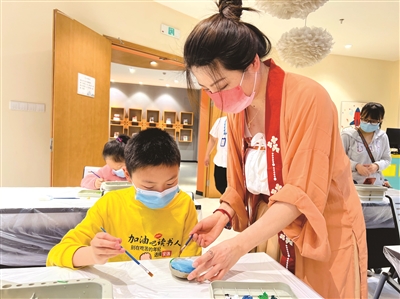 走進(jìn)臨平智慧圖書館,仿佛一秒“穿越”宋朝:攤好香席、鋪好香料,鋪灰、打篆、燃篆……身著漢服的打香人低頭焚香,裊裊青煙讓人不覺靜下心來;暖盞、調(diào)膏、擊拂……極具雅致的點(diǎn)茶表演將宋人吃茶的樂趣展現(xiàn)得淋漓盡致;起勢、抹弦、刮奏……撫琴人指尖翻飛,行云流水的樂曲讓聽眾陶醉其中……圖書館內(nèi),市民或欣賞或體驗(yàn)焚香點(diǎn)茶、撫琴對弈、書法繪畫、品茶飲酒、插花賞石等活動,當(dāng)了一回宋朝的“文藝青年”。