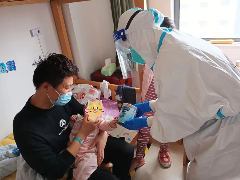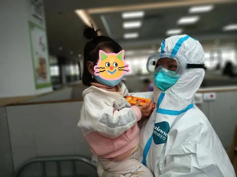 低齡患兒需要奶粉和尿不濕,有的家庭來(lái)方艙前帶的不多,“大白”們還專門(mén)籌集了一批母嬰用品給他們?!皩?duì)患兒來(lái)說(shuō),加強(qiáng)心理疏導(dǎo)和陪伴是很重要的,如果患兒是陽(yáng)性,陪護(hù)人員是陰性的話,只要簽署承諾書(shū),就可以進(jìn)親子艙陪護(hù),解決患兒分離焦慮?!庇崃止鸾榻B道。
