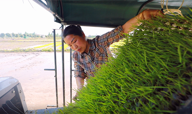 “今年早稻種了1200多畝,從4月10號開始拋秧,不到10天拋完700多畝了?!毙そㄇ嗫煅钥煺Z地說。一車秧苗拋完,她臉上掛滿了汗珠。