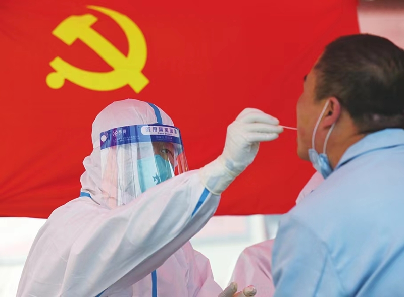 把黨旗插在第一線,以實際行動筑牢疫情防控“紅色防線”。4月26日,太原市迎澤區(qū)開展第三輪全員核酸檢測,在各個檢測點,最忙碌的還是身著防護服的“大白”,他們耐心又細致地為居民做著核酸檢測。武六紅 攝