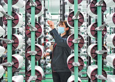江西省贛州市上猶縣新材料科創(chuàng)產業(yè)園,工人在加工生產電子級玻纖復合材料。