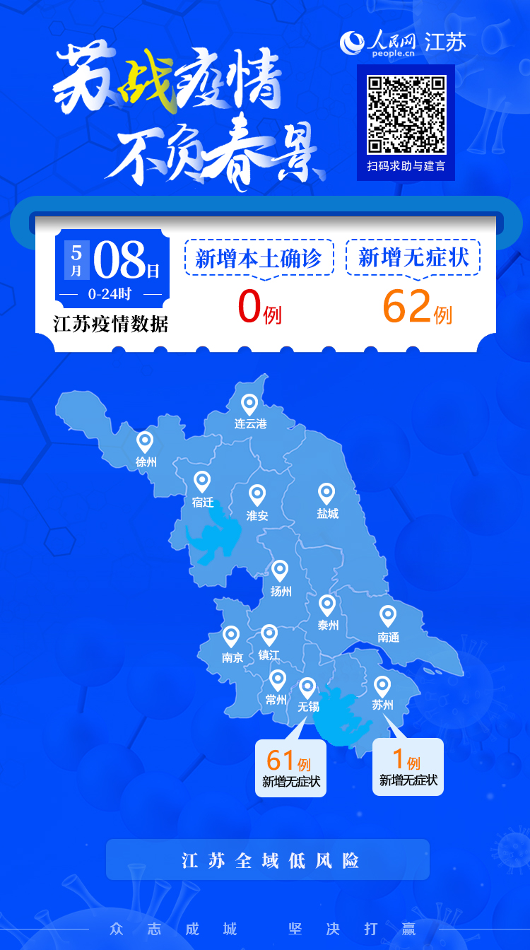 5月8日江蘇新增本土無癥狀感染者62例 無新增確診病例