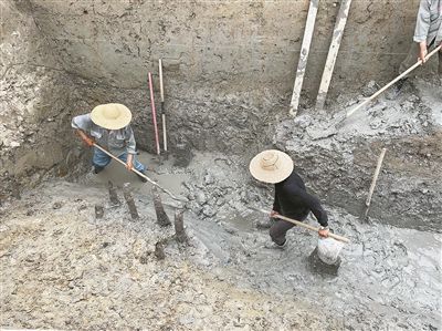 新發(fā)現(xiàn)的十余根古木樁。沈曉顏攝