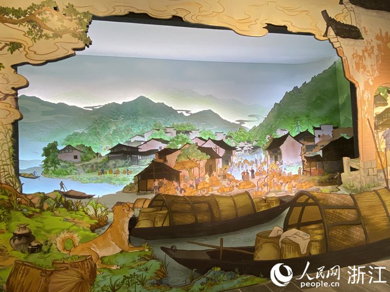 “茶之道”展廳生動還原了古代松陽縣集市交易的繁榮盛況。人民網 方彭依夢攝