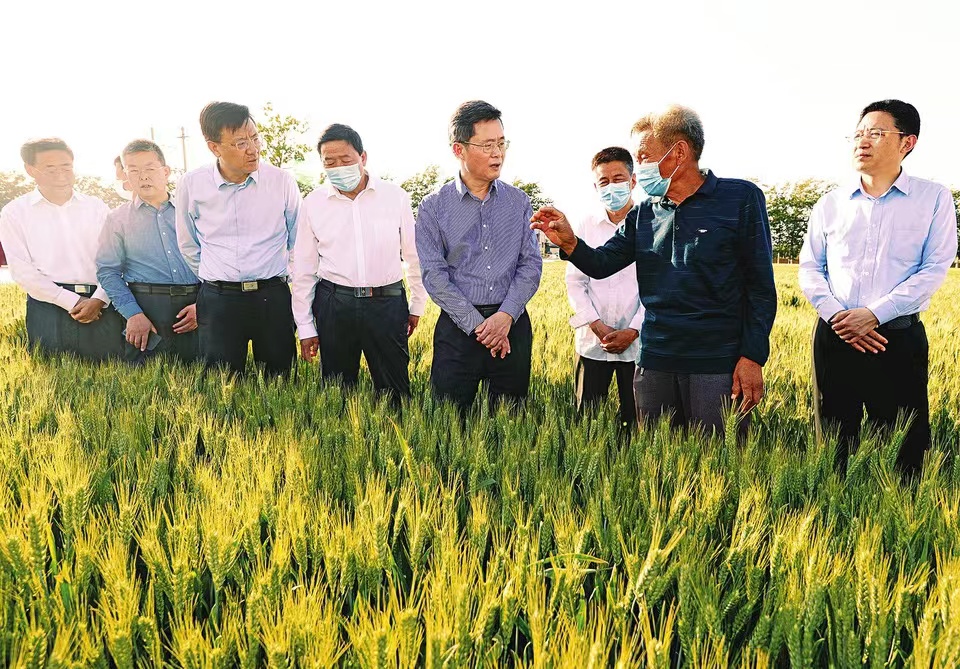 五月十七日,省委副書(shū)記、省長(zhǎng)、省總河長(zhǎng)藍(lán)佛安深入夏縣水頭村優(yōu)質(zhì)小麥生產(chǎn)基地,走進(jìn)田間察看麥苗長(zhǎng)勢(shì),與農(nóng)民、農(nóng)技專家交流,詳細(xì)了解麥種培育、小麥標(biāo)準(zhǔn)化種植及田間管理等情況。記者李兆民攝
