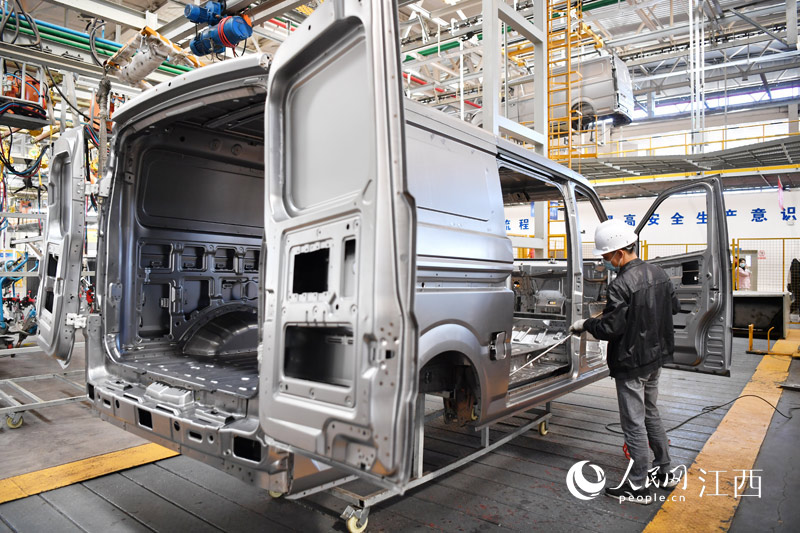 在江西省贛州市經(jīng)開(kāi)區(qū)的一家汽車(chē)生產(chǎn)企業(yè)的車(chē)間里,工人們正在作業(yè)。人民網(wǎng) 時(shí)雨攝