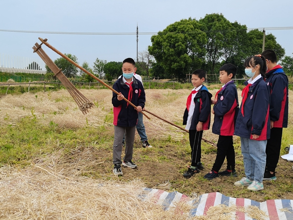 高淳區(qū)漆橋中心小學(xué)發(fā)揮地域優(yōu)勢(shì),拓寬勞動(dòng)實(shí)踐場(chǎng)所,依托街道中心村農(nóng)耕文化館開(kāi)展“打菜籽”研學(xué)活動(dòng)?!安倏v梿枷時(shí),前手上提,后手下壓,梿枷的轉(zhuǎn)軸循環(huán)轉(zhuǎn)動(dòng),反復(fù)拍打使油菜脫粒。”校外輔導(dǎo)員趙士華正詳細(xì)介紹油菜籽的收割、分離過(guò)程。通過(guò)講解,同學(xué)們對(duì)油菜籽的采收有了初步認(rèn)識(shí)。走進(jìn)田間,同學(xué)們紛紛擼起袖子,躍躍欲試。在趙士華的耐心指導(dǎo)下,同學(xué)們慢慢找到打油菜籽的正確方法,連枷不停地拍打下去,一粒粒油菜籽從油菜莢中躍出。同學(xué)們?cè)诹私廪r(nóng)耕知識(shí)、學(xué)習(xí)農(nóng)耕技能的同時(shí),體驗(yàn)勞動(dòng)的快樂(lè)。
