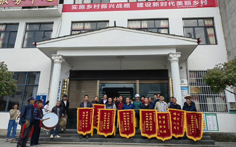 南坪村村民代表向湖北中煙駐村工作隊(duì)贈(zèng)送感謝錦旗。